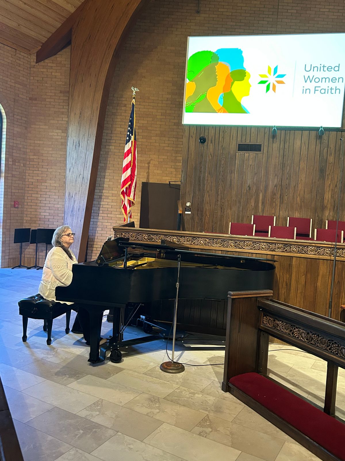 Gathering music with Rev. Deana Lowe, Wolfe City UMC at the piano.