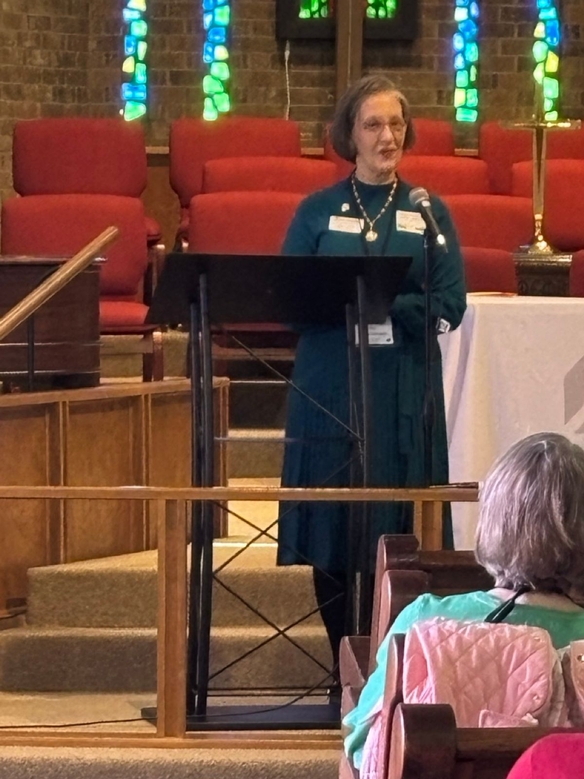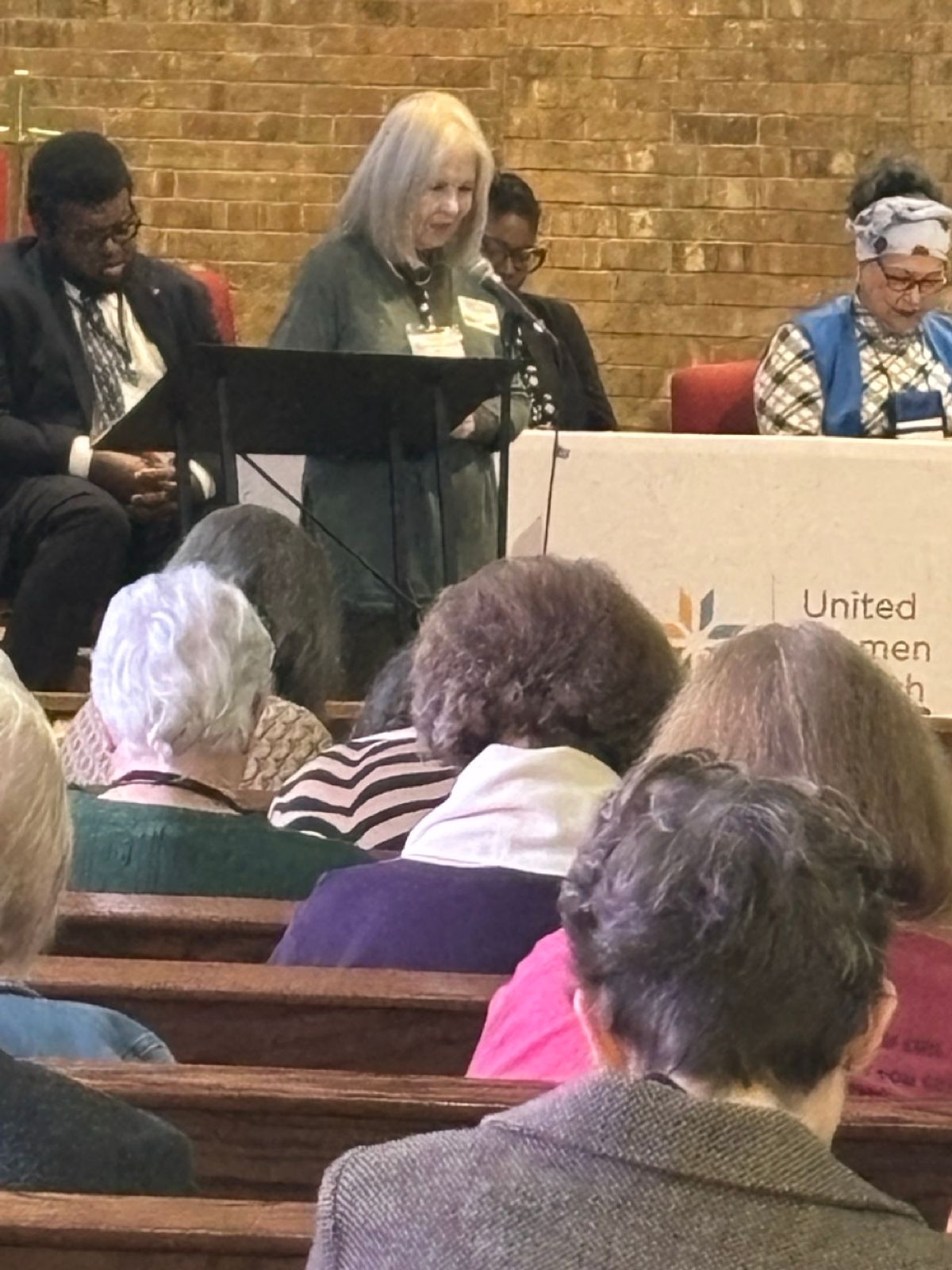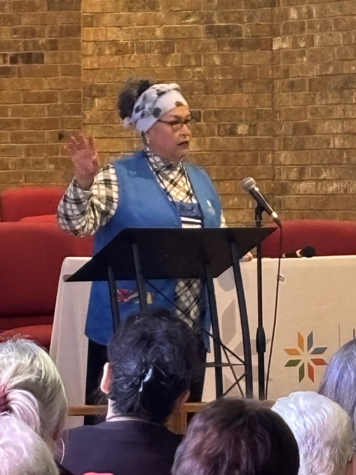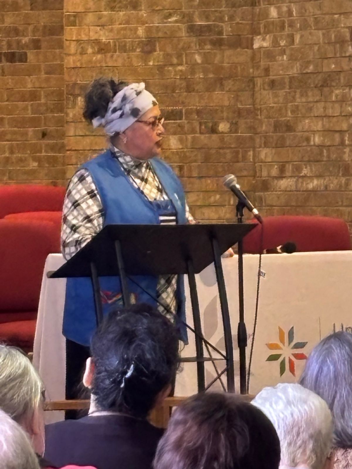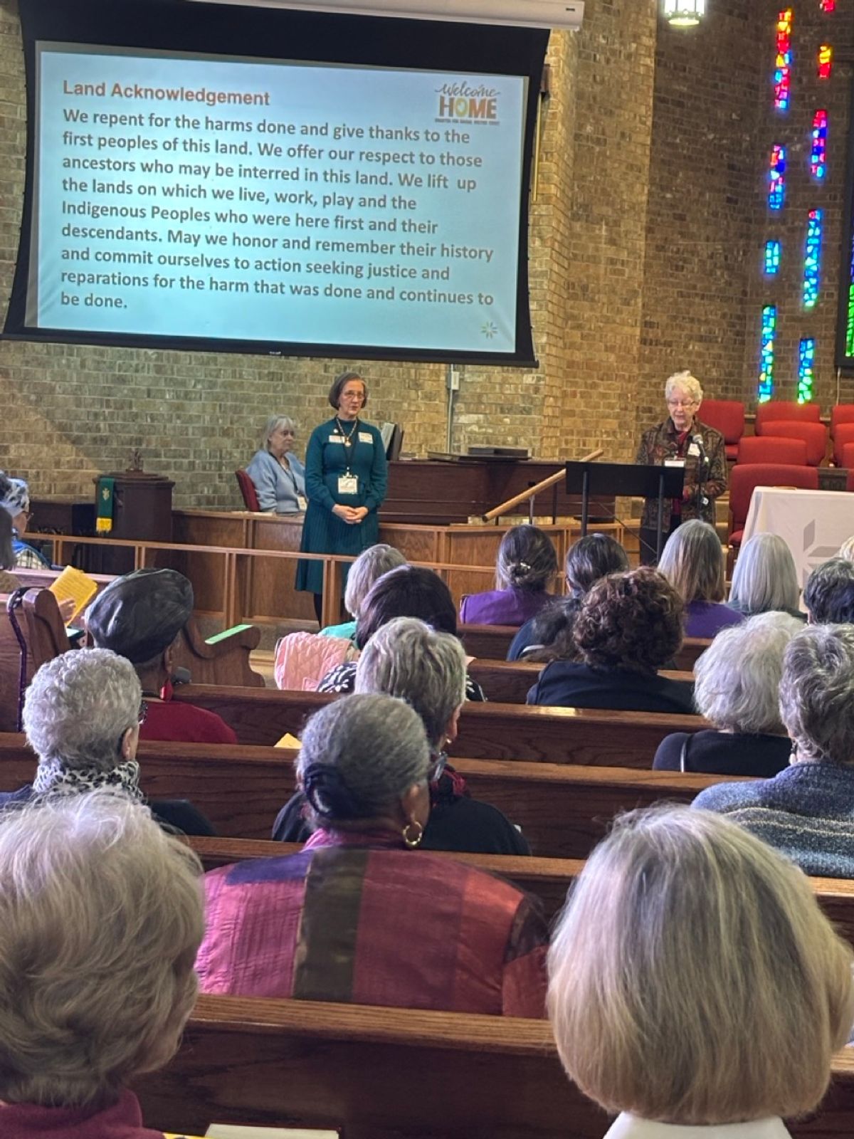 Vice-President Brenda Breeden reads the Land Acknowledgement