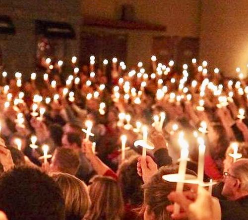 This is the true meaning of the light of Jesus’ birth. Christ was born not to be the light of the world, but to share God’s light with us, not for us to hold in our individual laps where it can’t be seen but to hold high and share with our cold, dark world (Matt. 5:14; John 1:1-9). This was brought home to me as we held our candles and sang. The candle used at Hannukah to light the others in the menorah is called a shamash. The altar candle used to light our candles was the shamash of the light of Christ symbolically being passed from him to us. As we raised them, our collective light shone in the darkness of that night, and the darkness did not overcome it (John 1:5).